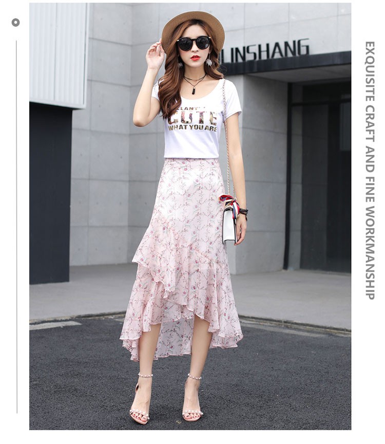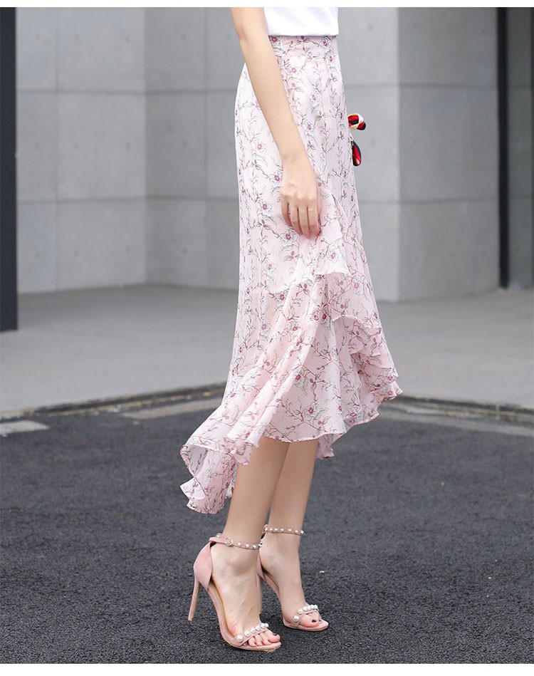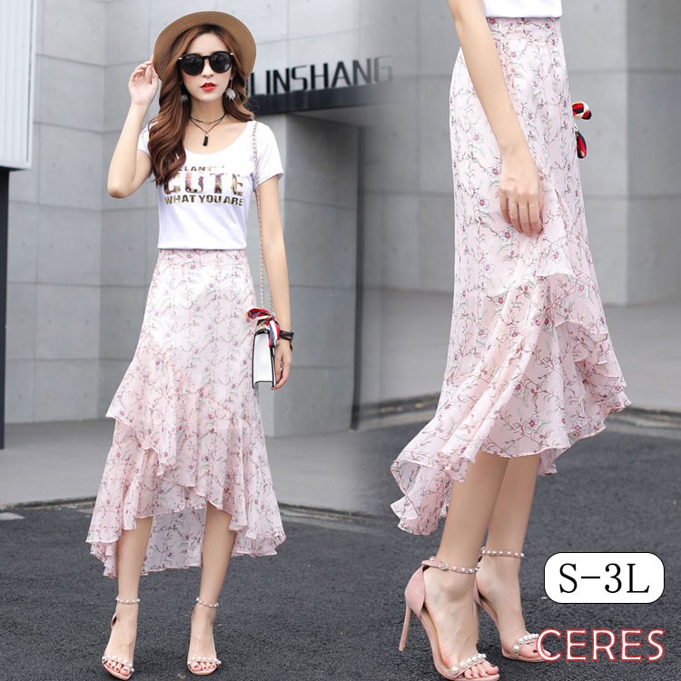 【製品仕様】■商品名レディース スカート 膝丈 ひざ下 ミディアム 夏 花柄 フレアスカート Aライン シフォン■商品説明見た目も華やかな一枚。動きのある裾のカットで、軽やかなで華奢なシルエットに。後ろが長いフィッシュテールで足を美しく優雅に見せてくれます。■サイズ/寸法S M L 2L 3L■素材/材質ポリエステル100%■色/カラーピンク【検索キーワード】スカート 膝丈 レディース 夏 花柄 フレアスカート Aライン フリル ミディアム ミモレ丈 ボトムス S M L 2L 3L 大きいサイズ おしゃれ 可愛い 30代 40代 ロング ミディアムスカート オフィス 通勤 きれいめ 高品質 欧米 シフォン
