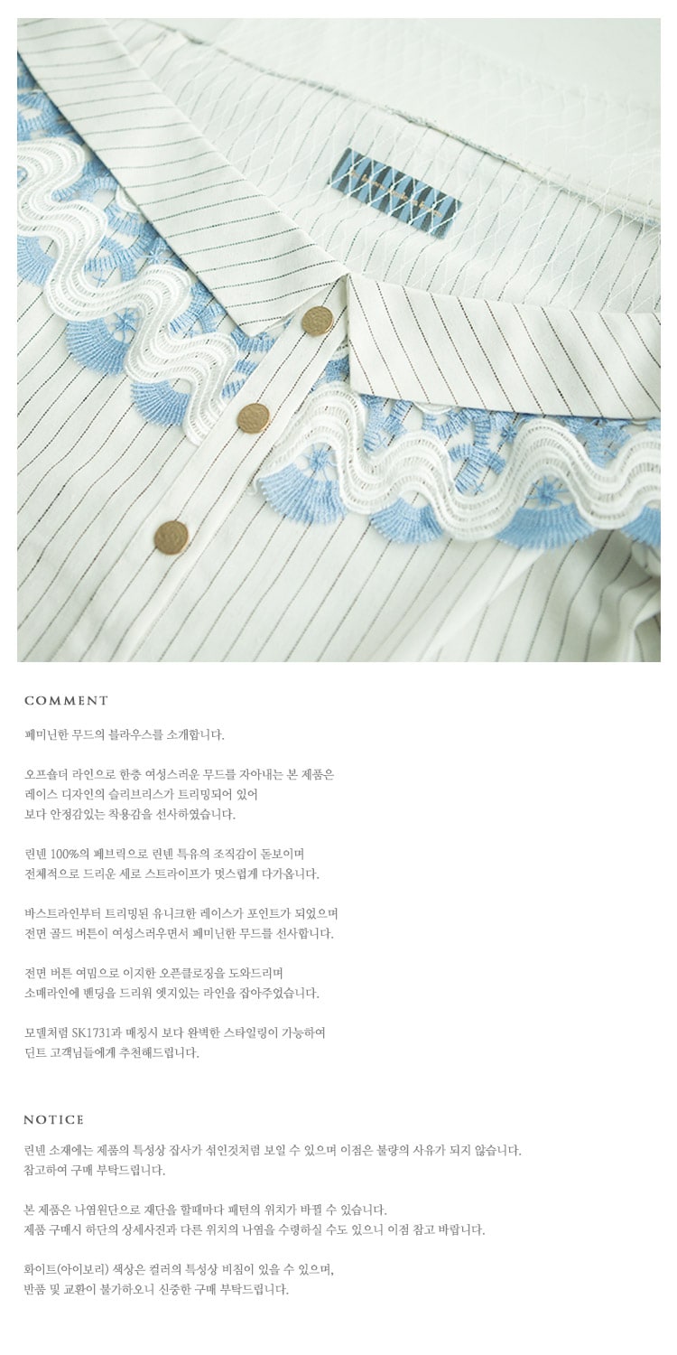 B2240 스트라이프 오픈 유니크 트리밍 블라우스 Ivory mix