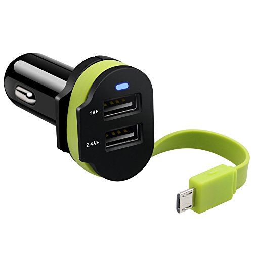-. Title : Dison Car Charger with Built-in Micro Cable for Samsung Galaxy,Note,any Android portable devices and Extra 2 USB Ports for iPhone 7