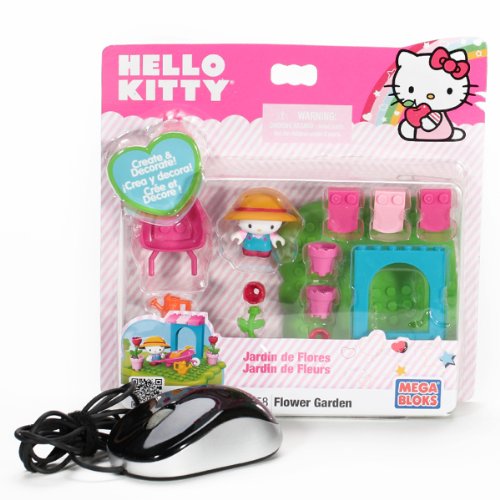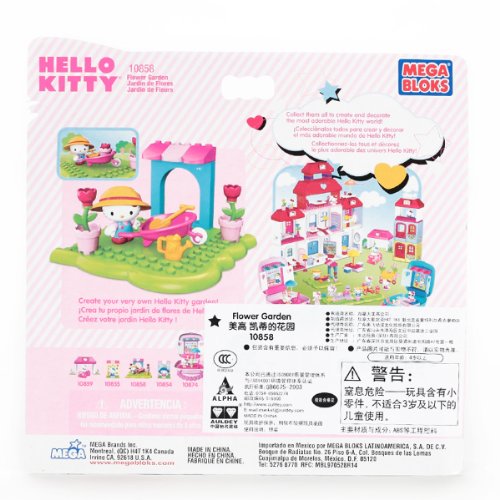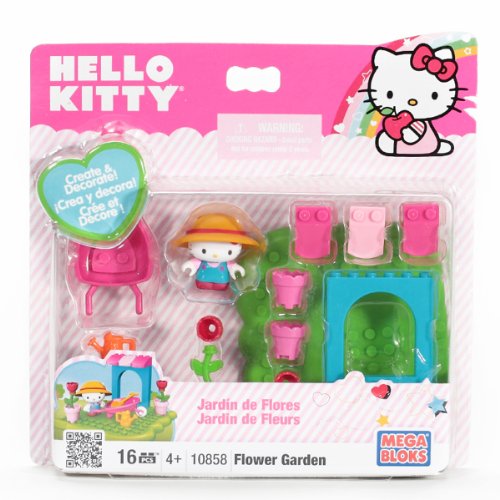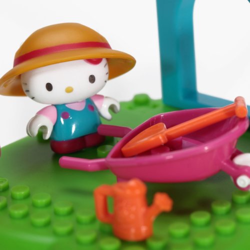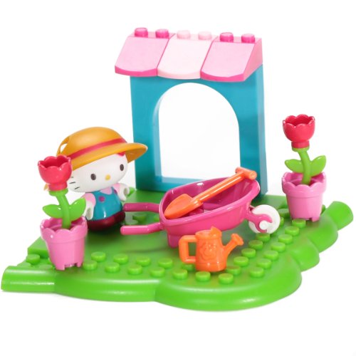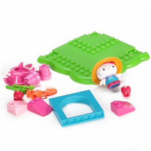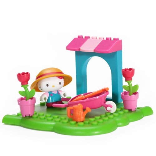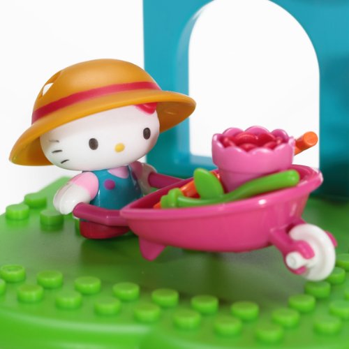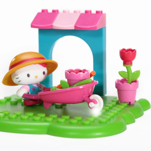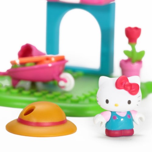 Hello Kitty gets to tend to her garden and plant all kinds of pretty flowers with the Hello Kitty Flower Garden buildable playset from Mega Bloks! Wearing her big gardening overalls, place Hello Kitty's sun hat on her head, then grab her shovel and watering can and head on out to tend to her flowers! Move pots and plants around in the wheelbarrow, or have her and her friends admire her pretty roses in the shade of her awning!