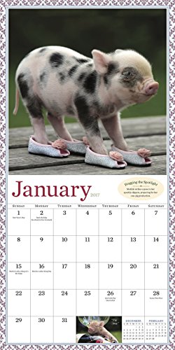 -. Feature : Features 12 full-color images of sweet-spirited teacup pigs accompanied by cute captions / Jan 2017 to Dec 2017; Includes bonus 4 month at-a-glance (Sept to Dec 2016) / Ample space for notes, important dates, and contacts / Size Closed: 12'' x 12'' / Size Opened: 12'' x 24''