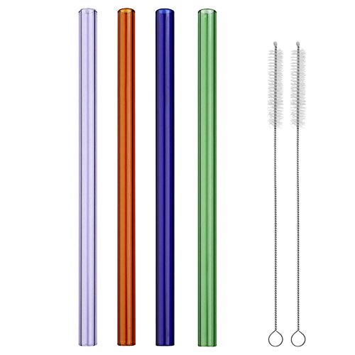 -. Title : Folox Reusable Straight Glass Drinking Straws 8 in x 10mm with 2 Cleaning Brush, Pack of 4 (Green Blue Orange Purple)