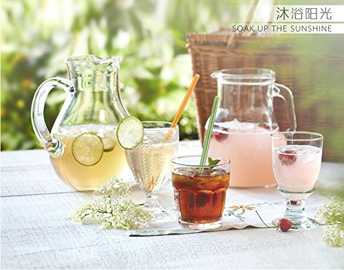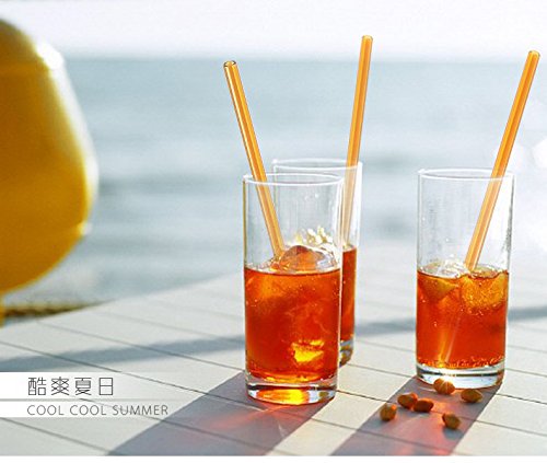 -. Feature : *Comfortable -- Perfectly to make sipping easy. Both ends are smooth and rounded which feel comfortable to use. / *Easy Clean -- Each glass straws pack includes 2 cleaning brushes, cleaning them is as easy as one swipe through with the brush. / *More Healthy -- 100% non-toxic and will not cause any health problem. Glass straws are reusable, environmentally friendly. The same straws can be used for years. / *More Fun -- Making a pleasant dranking, you can see beverage come from cup to your mouth through the beautiful straw, so much fun. / *Mutil Color -- Package include 4pcs Straight Glass Straws, included Green, Orange, Purple, Blue (200mm * 10mm ) , 2pcs Cleaning Brushes (200mm)