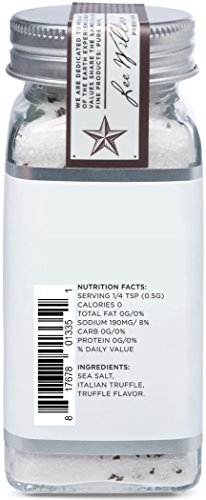 KOSHER CERTIFIED - Our Italian Black Truffle Sea Salt is Kosher Certified, Non-GMO, and does not contain any MSG, Soy, Gluten, Dairy, or anti-caking agents. We package in our U.S.A, GMP certified packaging facility that is 3rd party audited, by SCS Global. Crafted in the USA.