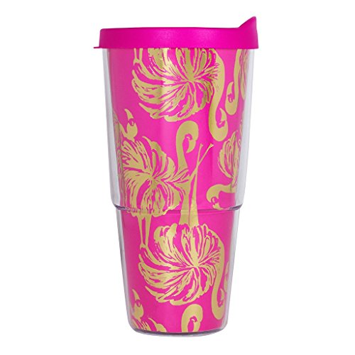 Lilly Pulitzer Pink Gold Tone Large Insulated Tumbler Gimme Some Leg
