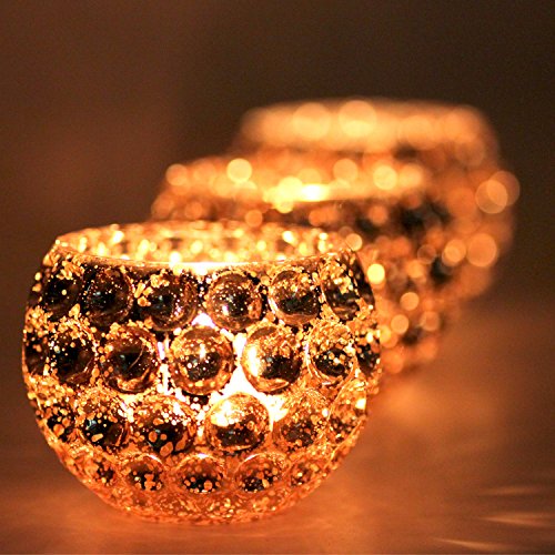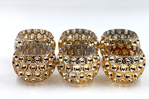 Tea Light Holders Glass Vintage Mercury Candle Holder- Set of 6 Gold