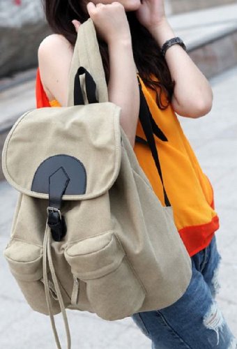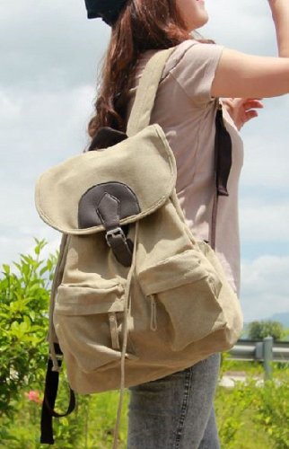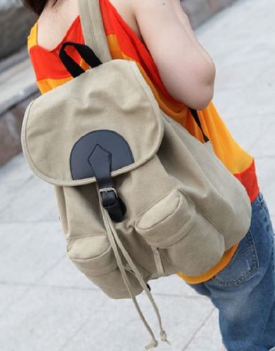 AM Landen Canvas Backpack School Bag Leisure Backpack (Light Beige)