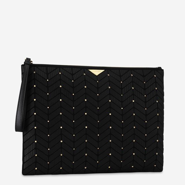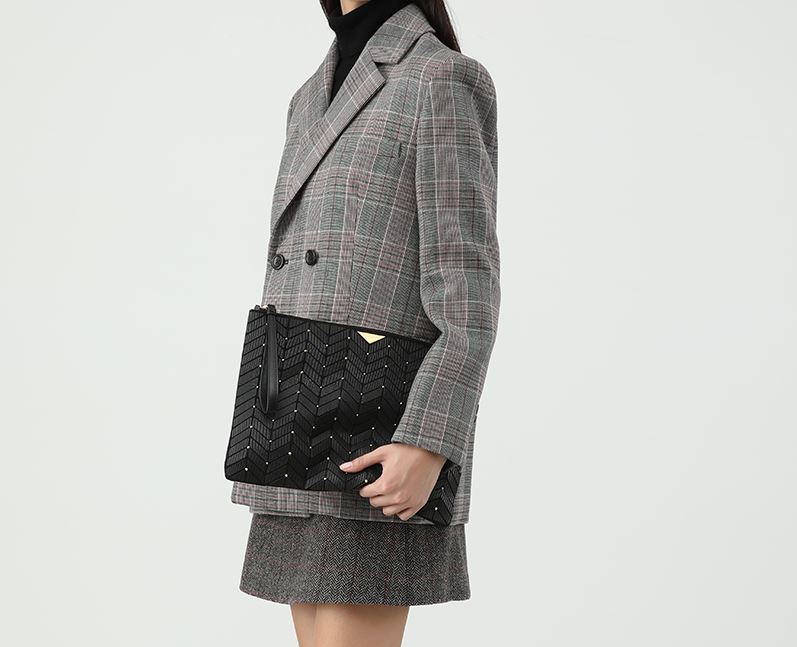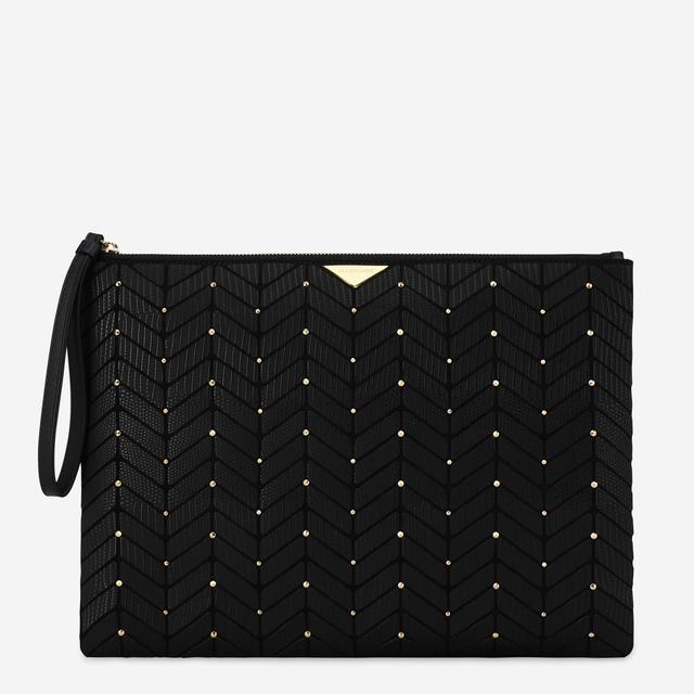 질스튜어트만의 로젤라 패턴에 골드 스터드로 포인트를 준 유니크한 외관의 클러치백입니다.