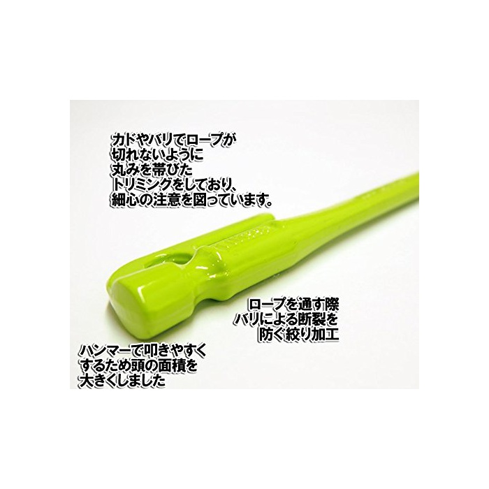 잔디밭이나 자갈 등에 둔 페그(말뚝)가 두드러지지 않아 고생한다! 그런 소리로부터,굳이 이익을 줬습니다. 방수 성능 이 뛰어난 카 티오《》전 입게 라이트 그린색의 분체 도장을 해 있습니다. 어떤 씬에서도 다루기 쉬운 사이즈의 전장280mm입니다.