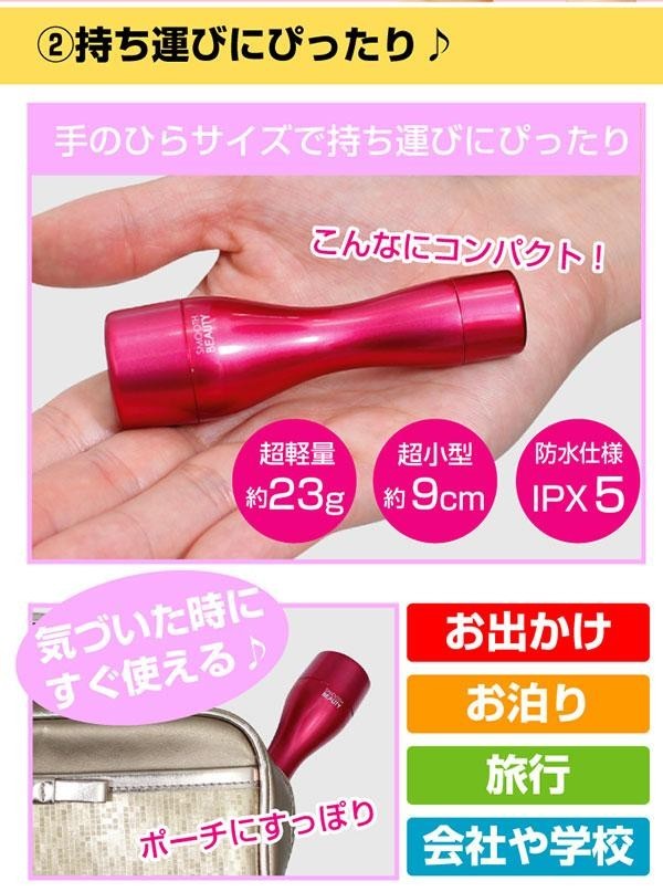 回転2枚刃なので、うぶ毛から長い毛までどんな毛も剃れてツルスベ肌に♪刃がお肌に直接ふれないので、肌を傷めずに深剃りできます!!手のひらサイズなので持ち運びにも便利☆フタの裏には鏡がついているので、どこでもチェックしながら剃ることができます!! |