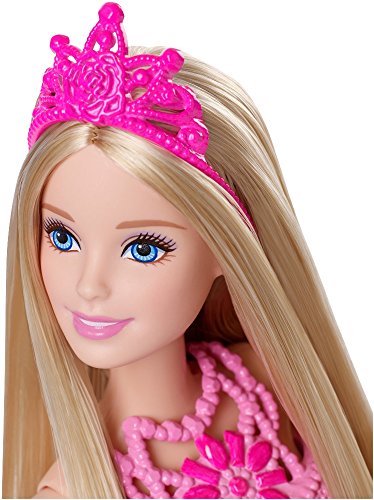 Girls can find their own happily ever after's with this pack that includes three royal fairytale dolls to expand the possibilities for play! With a fairy, princess and mermaid doll included, girls can mix and match to create all kinds of characters and tell all types of tales because with Barbie, anything is possible. Each doll wears a removable bodice and bottom with a rainbow-colored theme that can be easily swapped among the three dolls -- the fairy has an adorable petal skirt, the princess shines in a full-length look and the mermaid makes a splash with a sparkling tail. Accessories, like shoes, wings and a tiara, add to the creative fun. Girls will love changing the dolls' looks as they develop their stories and express their unique styles. Pack includes fairy doll wearing bodice, skirt, fairy shoes and wings; princess doll dressed in a bodice, full skirt, shoes and tiara; and mermaid doll in bodice, tail and fins.Feature