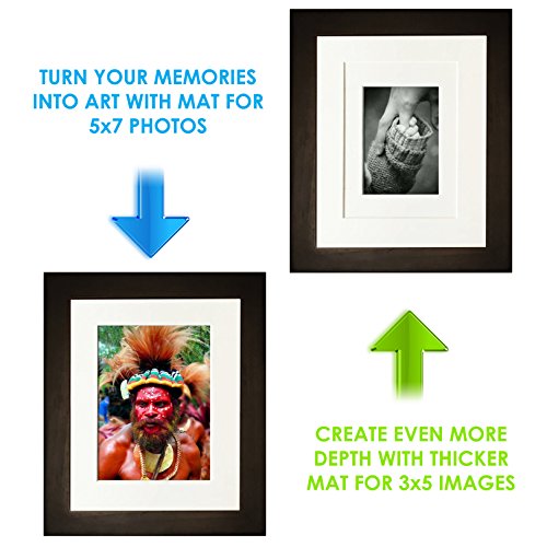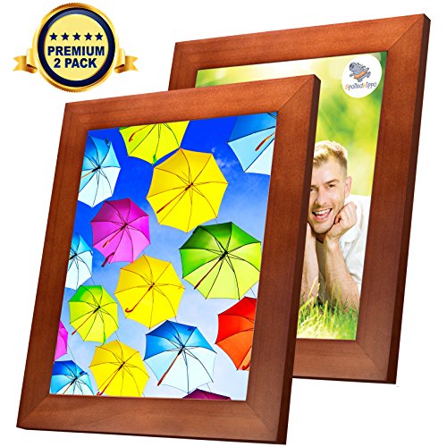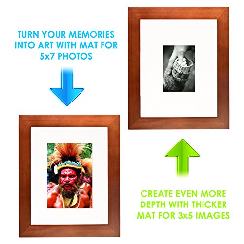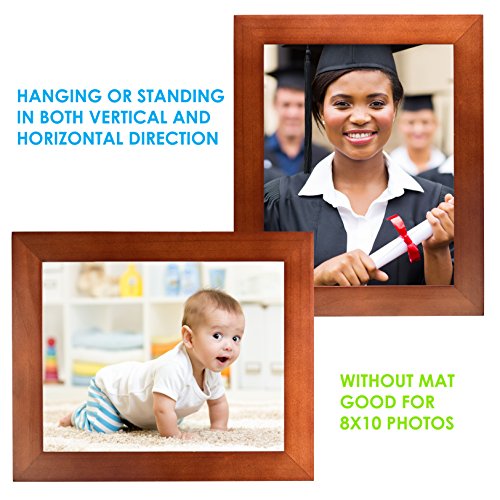 8x10 Picture Frame Collage - Set of 2 Brown Wood Frames - Photo Frame for Wedding, Certificate, Family and Baby Pictures - Matted Frames for Wall with 4 Mats for 5x7 and 3x5 Photos
