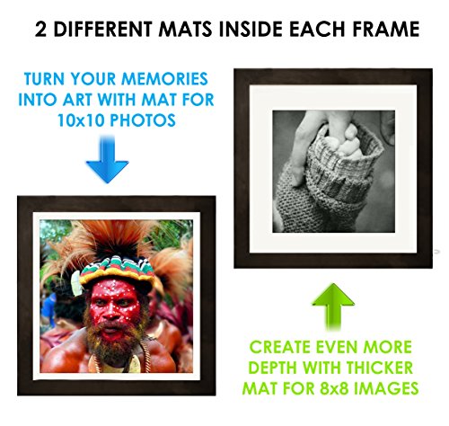 11x11 Picture Frame Collage - Set of 2 Black Wood Frames - Square Photo Frame for Wedding, Certificate, Family and Baby Pictures - Matted Frames for Wall with 4 Mats for 10x10 and 8x8 Photos