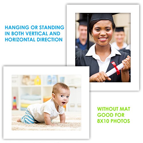 8x10 Picture Frame Collage - Set of 2 White Wood Frames - Photo Frame for Wedding, Certificate, Family and Baby Pictures - Matted Frames for Wall with 4 Mats for 5x7 and 3x5 Photos
