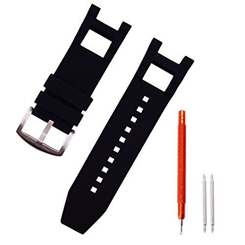 -. Feature : Color: Black / (Buckle & Pins Not Include) / band width: 28mm (26mm at buckle end) / Total Length:210mm [130mm / 80mm ] / Thickness: 7 mm tapering to 4 mm / Material: Rubber