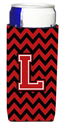 Letter L Chevron Black and Red Ultra Beverage Insulators for slim cans CJ1047-LMUK