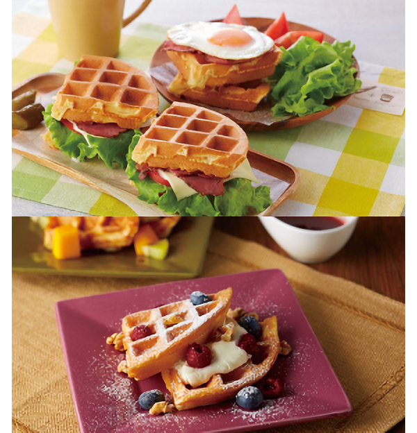 ●デコレーション次第でシンプルにも華やかにも!直径約18cmのホール型ワッフルが焼けます。