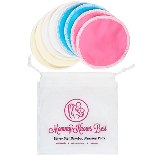 Mommy Knows Best Ultra Soft Organic Bamboo Nursing Pads With Storage Bag - Eco-Friendly, Extra Absorbent, Washable, Reusable Breastfeeding Pads...