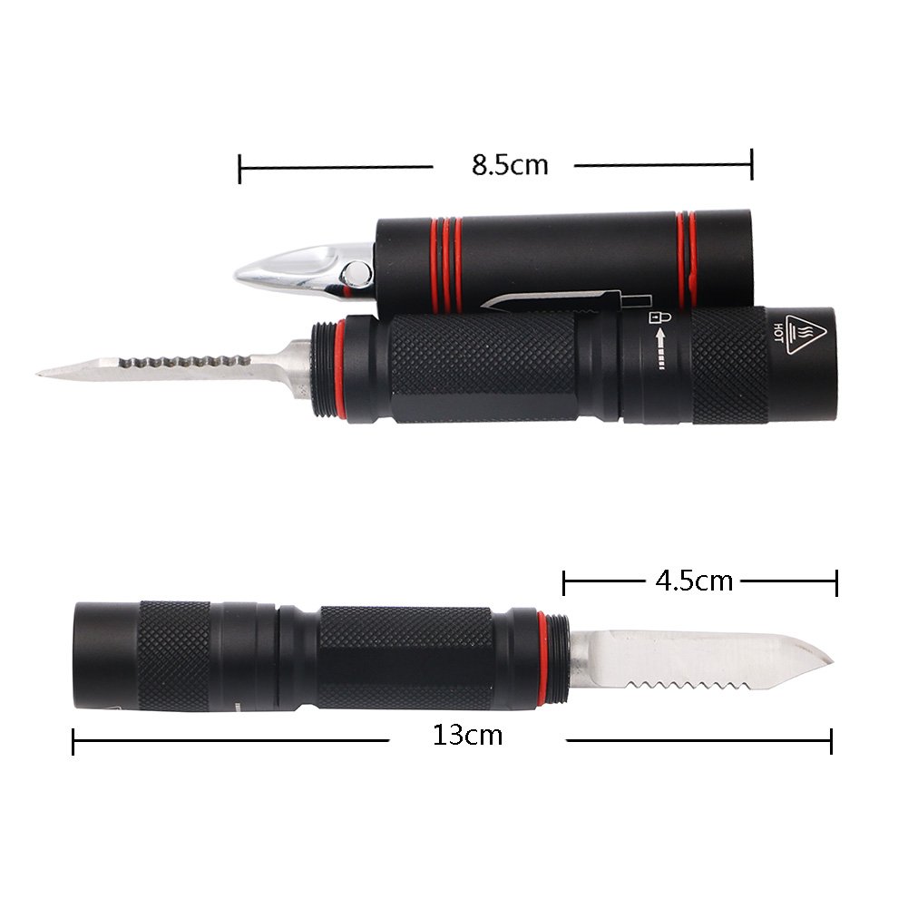 Outdoor flashlight with a tactical knife, 3 out 1 outdoor flashlight (medium light, tactical knife, hammer attack) Outdoor activity is very convenient, this emergency tactical flashlight knife material is military