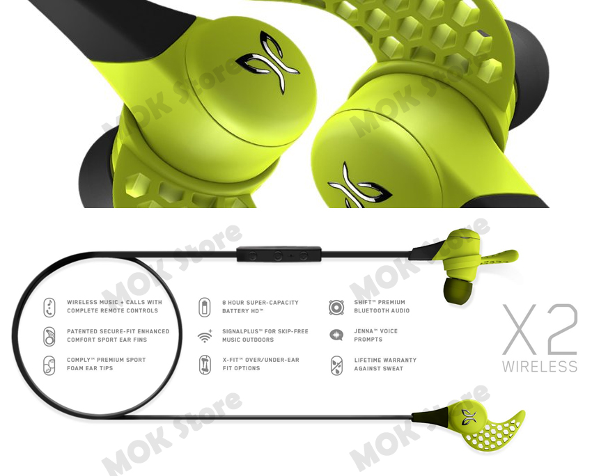 Micro-sized sweat-proof sport Bluetooth buds delivering superior audio performance (music & calls) rivaling the best in wired headphones. Patented Secure fit for ultra comfort, ready for anything you can dish out on the trail, in the gym or on the slopes. Breakthrough exclusive super-capacity Battery HD technology doubles Jaybird X2's playtime to a solid 8 hours, offering a full week of workouts, or a full day of listening. Use your music device on your left or right side, above or below the waist, it doesn’t matter with SignalPlus, for skip-free music outdoors.