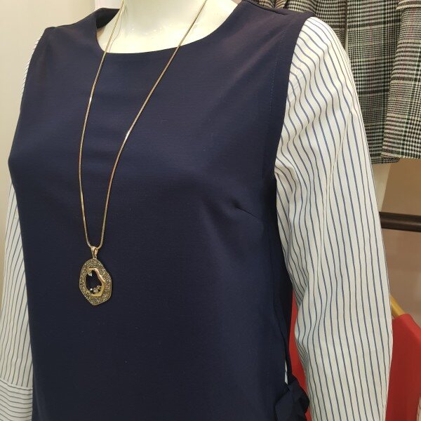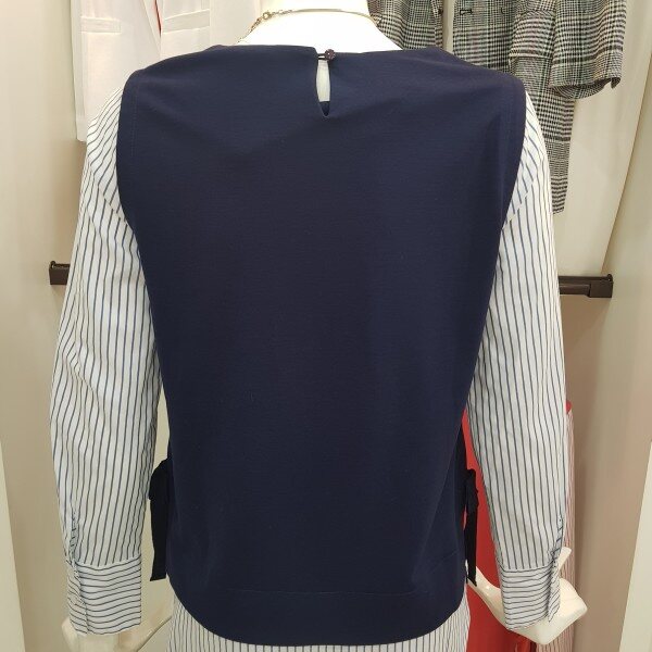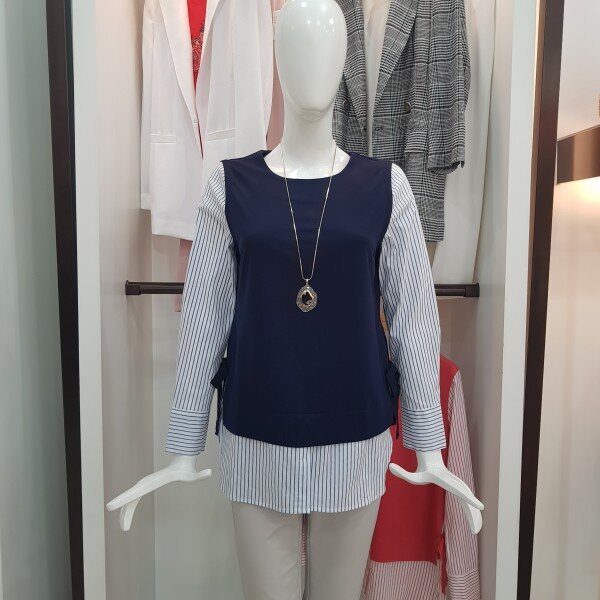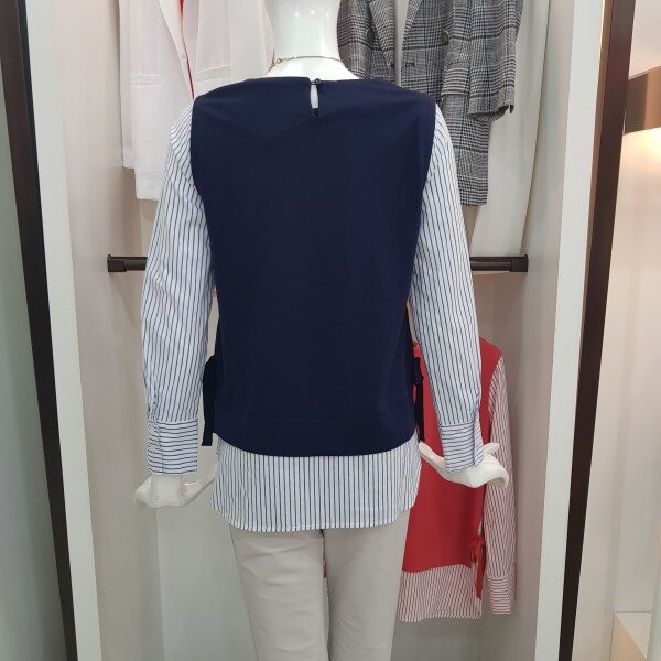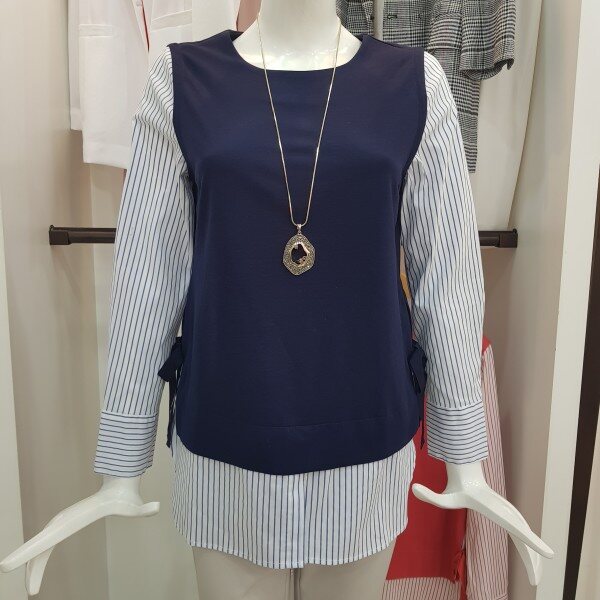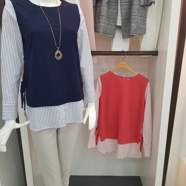 옆 라인에 리본 디테일로 포인트를주고 셔츠와 레이어드한 티셔츠봄가을추천