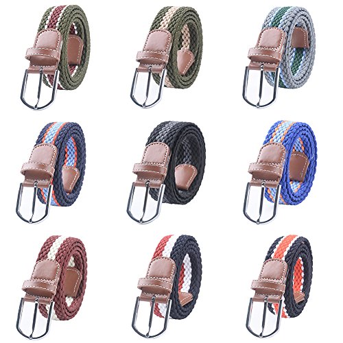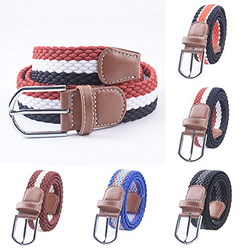 | (HEART SPEAKER)/Accessories/Belts Buckles/DIRECT FROM USA/HEART SPEAKER Fashion Striped Men Elastic Braided Woven Stretch Buckle Belt Strap Waistband |