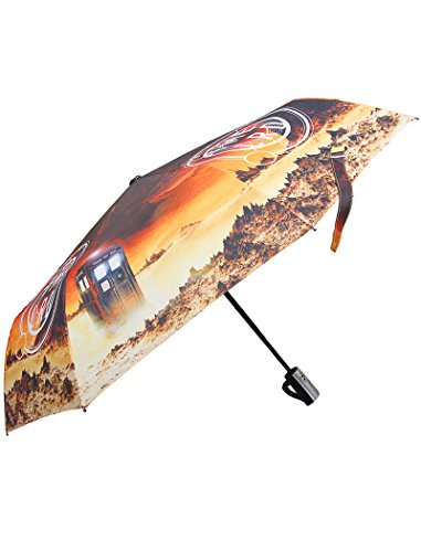 -. Brand : Doctor Who -. ClothingSize : One Size -. Color : Multicoloured -. Department : unisex-adult -. EAN : 5060326219079 -. Feature : Officially-licensed by the BBC, this folding umbrella is decorated with 'Time Lord' and Gallifreyan symbols / High Quality Fibre Glass Frame with an Aluminium Shaft / Automatic Open and Close: just push the button and the 21" canopy opens up! -. Model : 10437864 -. MPN : 10437864 -. NumberOfItems : 1 -. PackageQuantity : 1 -. PartNumber : 10437864 -. ProductGroup : Apparel -. ProductTypeName : LUGGAGE -. Size : One Size -. Title : TARDIS Folding Umbrella - Doctor Who Automatic Open & Close Umbrella by LOVARZI
