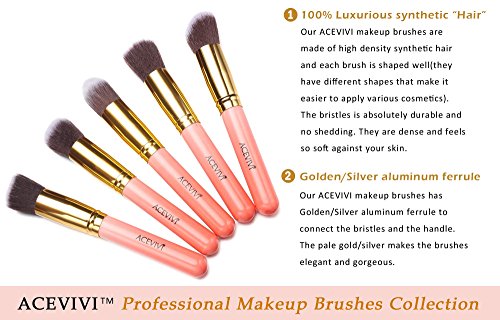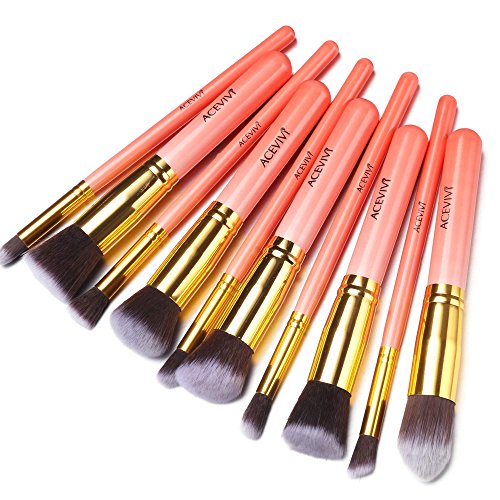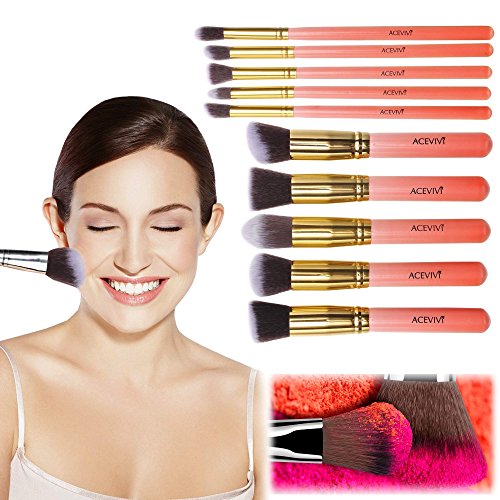 ACEVIVI Makeup Brushes - 10 PIECE Premium Makeup Brush Kit Bamboo Handle Synthetic Kabuki Foundation Cosmetic Brushes for Powder Liquid Cream