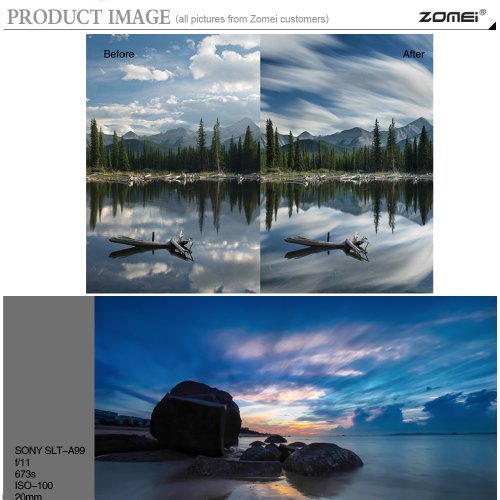 Studio : Zomei Publisher : Zomei Binding : Electronics Product Description Introduction: By rotating the end of the lens you are able to control the amount of light (between 1 and 8 stop values) that enters the lens. Foe example, f/4 instead of f/8 for selective sharpness instead of great depth of field, or 1/15s instead of 1/60s for a smooth, blurred water effect instead of a 'frozen' waterfall. Explanation of "X" cross issues: "X" cross on images is a common issue with wide angle lenses and variable ND filters. Physics limit the capabilities of variable ND filters on wide angle lenses. When you enter the edge of the max range,the "X" issue may appear on yout image. Because you are using it beyond its capability according to the laws of optical physics,which will inevitably cause this phenomenon. If you want to use ND filtration at wider angles, you'll need to get a ND filter (or multiple filters) with a static density. Color Shift The color of the image may vary between warm and cold. This is a common phenomenon of all variable ND filters. You need to asjust your white balance accordingly when set the ND filter to different ranges. Package Include: 1 x 82mm HD ND2-400