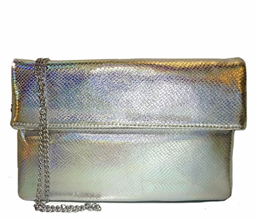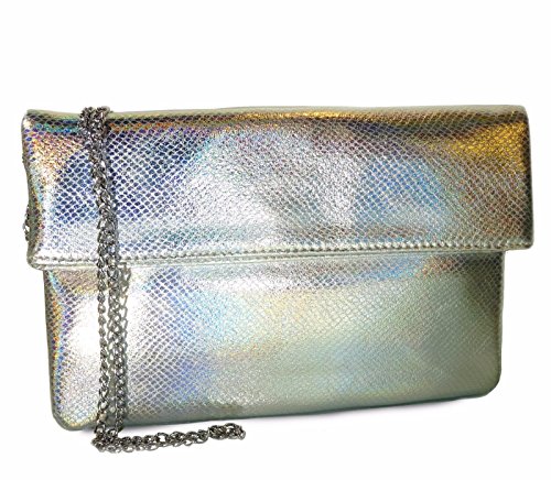 Studio : Western Fashion Publisher : Western Fashion Binding : Apparel Product Description New MMS Design Studio® Metallic Python Fold-Over Large Clutch/Crossbody- Silver Hologram