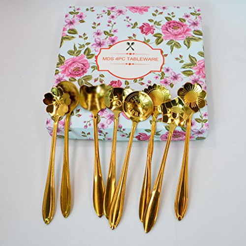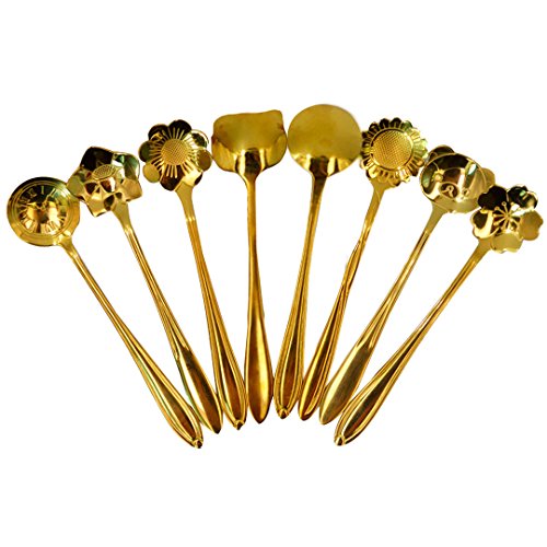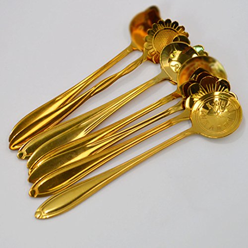 Each spoon has its different exquisite & beautiful etched design - Sunflower, Sakura, Balloon flower, Clock and other Cartoons
