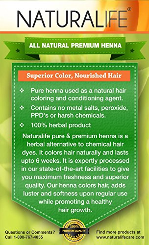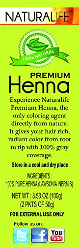 Experience Naturalife premium henna, the only coloring agent directly from nature. It gives your hair rich, healthier-looking radiant color from root to tip with 100% gray coverage. Naturalife premium henna is a herbal alternative to chemical hair dyes. It colors hair naturally and lasts up to 6 weeks. It is expertly processed in our state-of-the-art facilities to give you maximum freshness and superior quality. Our henna colors hair, adds luster and softness upon regular use while promoting a healthy hair growth. Advances in organic research have enabled contemporary and advanced formulas of organic and natural compounds to eliminate the need for ammonia in professional hair coloring products. Naturalife is one of the most innovative companies in the world towards organic and natural hair products. For over a decade, we have been dedicated to manufacturing and distributing the most natural and gentle professional hair products available. Our professional color line is organic color systems which uses no ammonia or dangerous chemical additives in our ingredients.Feature