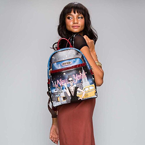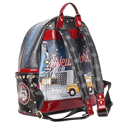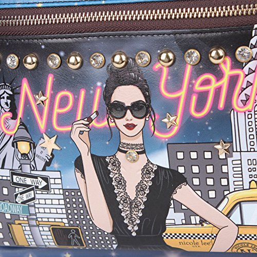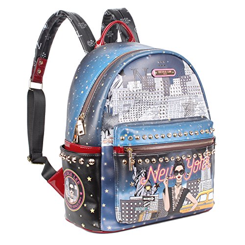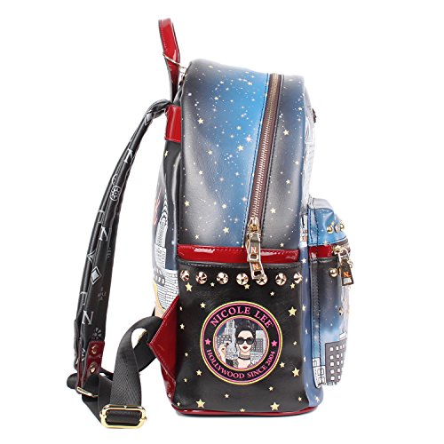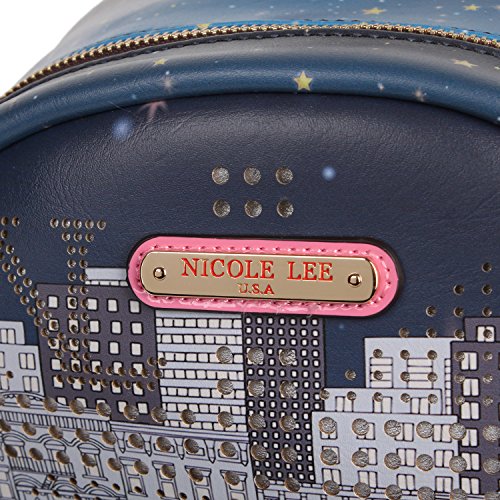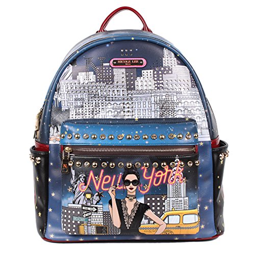 Product Description You will be strutting the streets in style with the Nicole Lee New York With A Style Print Backpack With Laptop Compartment. Exterior Features: New York With Style at front , made of vegan leather, laser cut design at front, signature studs and rhinestone, open side pockets, front zip pocket, metal zipper closure with NL monogrammed zipper pull, top handle, NL authentic medallion on handle, monogrammed back pack straps, structured silhouette, and NL nameplate at front. Interior Features: Large compartment, zipper wall pocket with NL nameplate, vegan leather key chain, double open wall pockets at front, laptop compartment and NL Polka dot logo nylon lining. Vegan leather handles with 3" inch drop. Includes adjustable 23" - 29" inch shoulder strap. Color available New York With A Style. For cleaning, wipe with damp cloth. 0