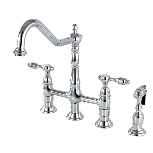 Kingston Brass KS1271TALBS Tudor 8 Inch Center Kitchen Faucet With Brass Sprayer, Polished Chrome, 8-3/4 inch in Spout Reach, Polished Chrome