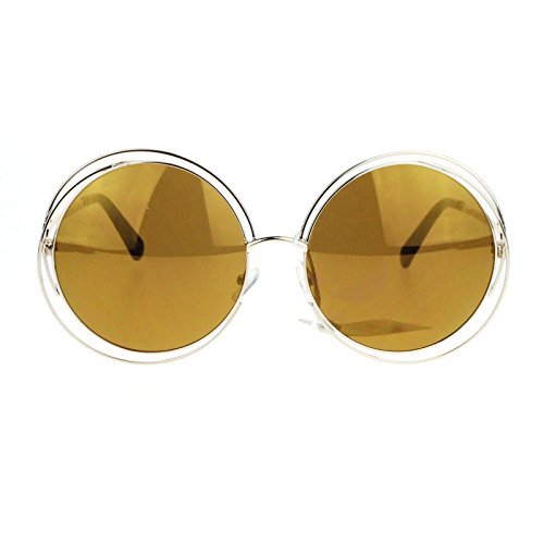 SA106 Womens Round Double Wire Metal Rim Oversize Circle Lens Sunglasses