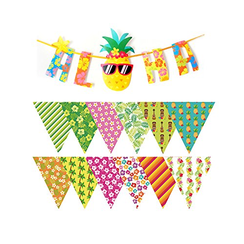 -. Feature : Package: " ALOHA" pennant banner(single side), 12 pennant triangle paper flags(double side), 2 ribbons(7ft and 8ft). / Material: High quality paper for long-time and sturdy hanging decor. / Ideal for luau party, Hawaii tropical jungle themed party, summer beach party, pool party. / The banner comes unassembled. Just take 5 minutes to string them together. / Our fast delivery and good quality will make you satisfied. 100% refund service.