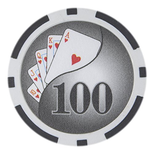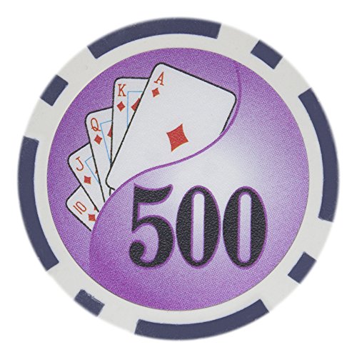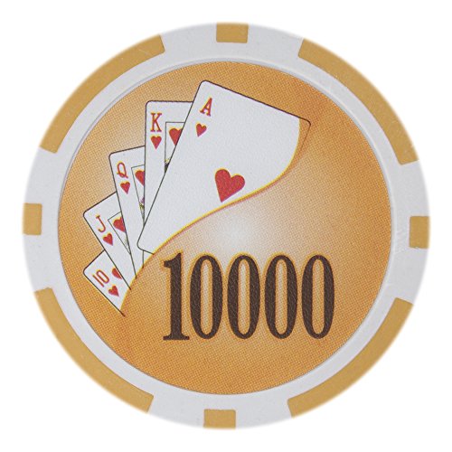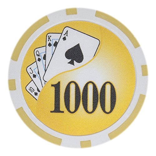 These heavyweight clay composite poker chips are great for cash and tournament games alike, for casual players and high rollers. Available in 10 denominations ranging from $1 to $10,000, the richly-colored inlay art features four aces with large, easy-to-read denominations, and the clay's grippy texture makes stacking these chips a breeze.