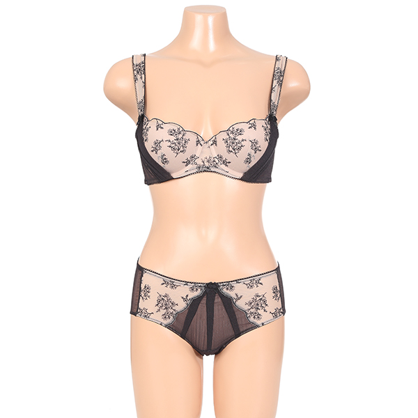 반컵스타일의 제품으로 기존 3/4컵 브래지어 보다 윗가슴이 드러나 더욱 볼륨감있게 연출하실 수 있습니다.