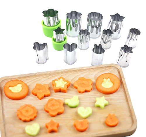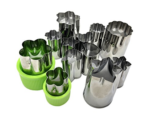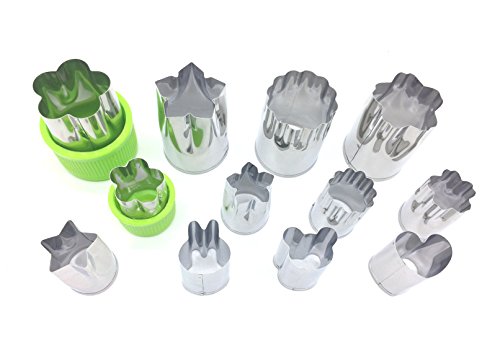 IoneStar Vegetable Fruit Cutters Shapes Set(12Pc) for Kids,Mini Bulk Metal Stainless Steel Cookie Cutters Cheese Presses, Flower Star Heart Animals Shaped Mold for Decorative Customizing Tools Kit