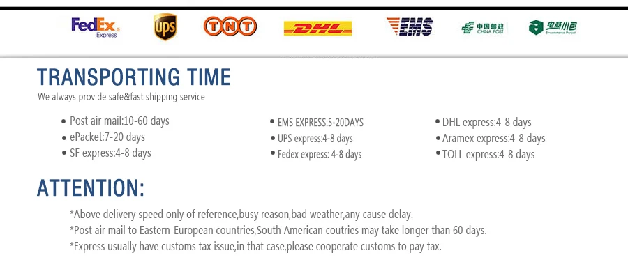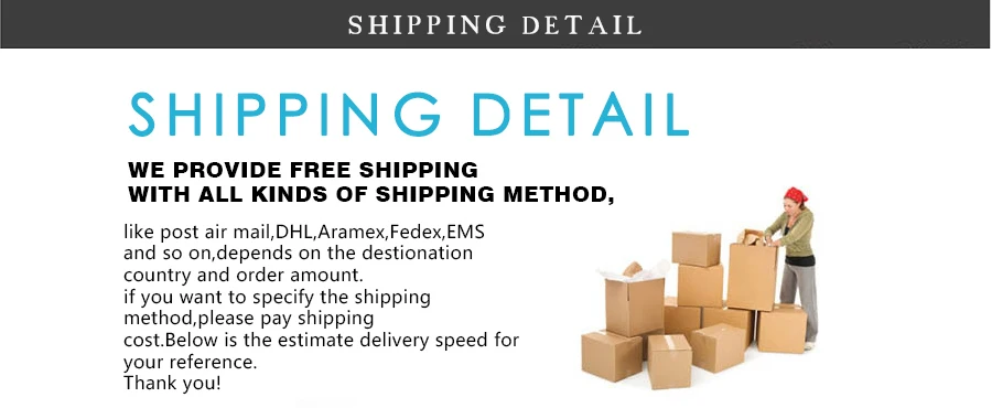 The fastest shipping time:3-5days via DHL/UPS/FEDEX