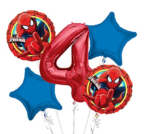 -. Title : Spiderman Balloon Bouquet 4th Birthday 5 pcs - Party Supplies