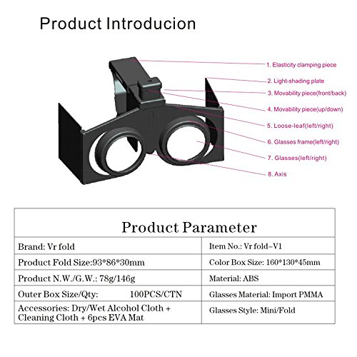 -. Binding : Electronics -. Brand : Andoer -. Feature : The 3D Glasses is a great supplement and extending device of the network set-top box and bring you wonderful experience of watching movies and playing games. / 3D VR Virtual Reality Glasses, Offers you super 3D Picture Effect and Wonderful Feeling. / High-precision lens provides a clearer picture and a better view. / Will not feel visual fatigue and dizzy even you use it for a long time because of the resin lens. / Adjustable pupil distance and sight distance, satisfying different groups of people. -. Label : Andoer -. Manufacturer : Andoer -. MPN : DSE5379741752294YR -. PackageQuantity : 1 -. PartNumber : DSE5379741752294YR -. ProductGroup : CE -. ProductTypeName : AUDIO_OR_VIDEO -. Publisher : Andoer -. Studio : Andoer -. Title : Andoer Folding 3D VR Glasses Virtual Reality Headset Movie Game Universal for iPhone Samsung / All 4.0 to 6.0 Inches Android iOS Smart Phones