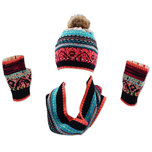 ABG Accessories Girls' Fairisle Hat, Snood and Handwarmer Set