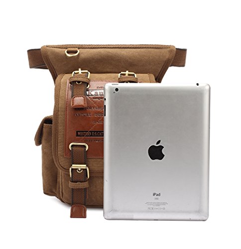-. Feature : Dimensions: 19cm(Length)*9cm(Width)*32cm(Height) / Material: Rough canvas / Style: Hiking/Traveling Belt Bag,Waist Pack,Cross body bag,Phone/Wallet Purse / Awesome bag for hands-free activities / Cool gift for men, father, boyfriend.