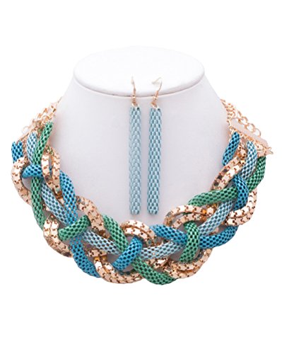 Necklace features braid of different snake chains. It also has a lobster clasp closure and adjustable chain. Dropping earrings feature dangling snake chain and french wire hook.
