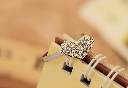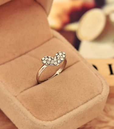 cincin cinta hati kristal penuh Perak berlapis Resizable wanita fashion crystal heart full of love Silver plated ring Resizable party JEW SJA0846535262 GHJ qty010