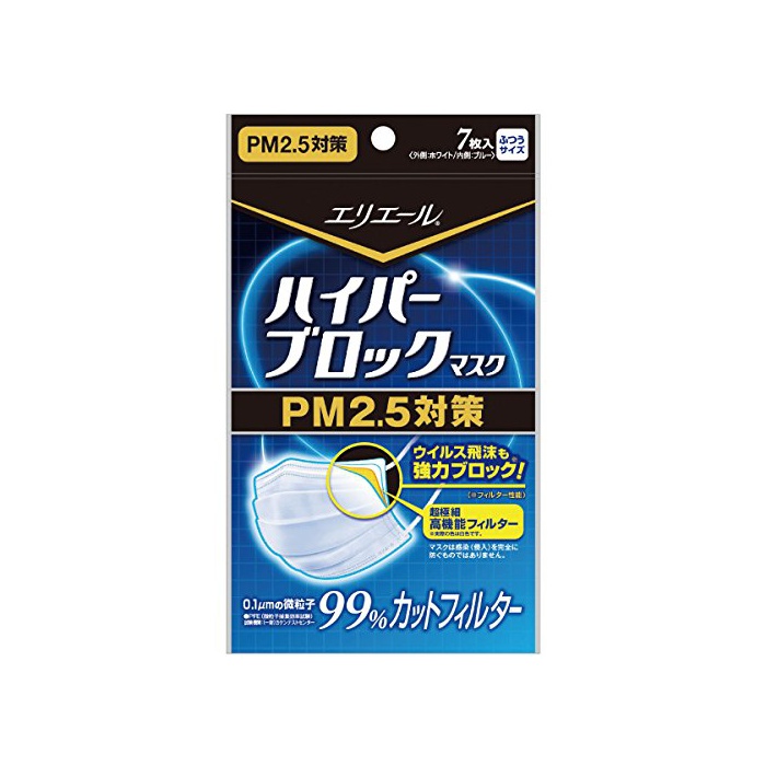 원본상품명: (PM2.5??)エリエ?ル ハイパ?ブロックマスク PM2.5?策 ふつうサイズ 7枚入