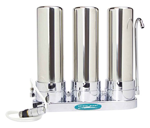 CRYSTAL QUEST Countertop Replaceable Triple Fluoride Water Filter System (Stainless Steel)