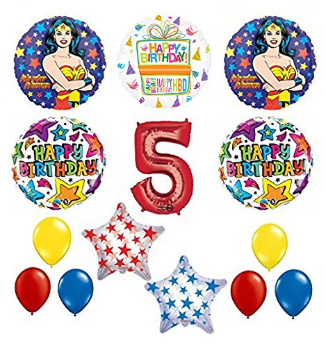 -. Title : Wonder Woman 14 pc Superhero 5th Birthday Party Supplies and Balloon Decorations