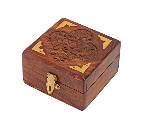 This wooden jewelry box is hand carved from Rosewood (sheesham wood) and precisely carved by our artisans